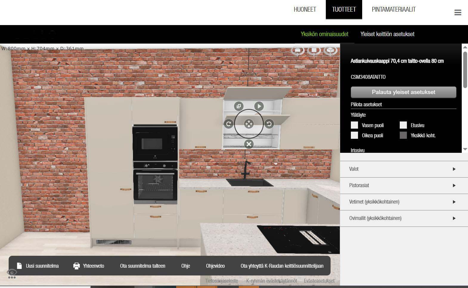 Suunnittelu ja tilaaminen onnistuu alusta loppuun saakka Plannerissa: ohjelma suunnittelee keittiön annettujen mittojen ja tuotevalintojen perusteella. Taustalla toimii logiikka, joka ratkoo automaattisesti työtasojen tapaiset hankalimmatkin kohdat. Tuotevalikoima sisältää kaikki tarvittavat tuotteet keittiön rakentamista sekä asentamista varten ja lisäksi ohjelma piirtää realiaikaiset mittatarkat asennusohjeet, joiden mukaan keittiöasennus on vaivatonta.